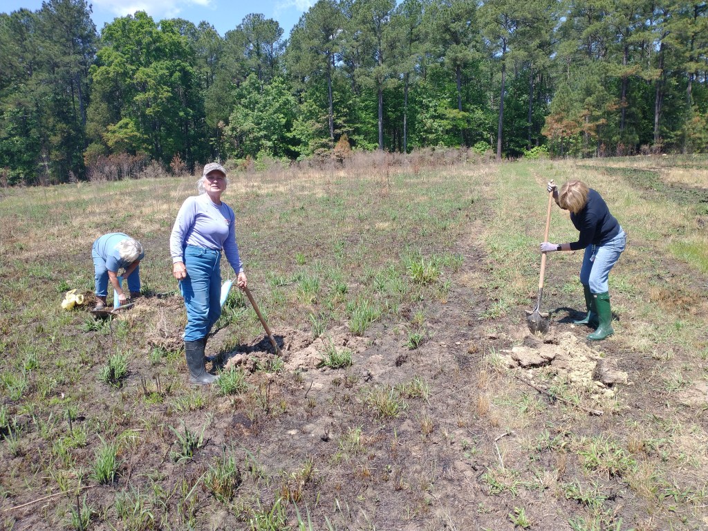 Twelve enthusiastic volunteers rescued approximately 30 Buttonbushes and several Chickasaw plumb trees from land near New Hill, NC that Duke Energy is going to develop into a solar farm bringing renewable energy on the grid for the benefit of their customers. After digging up the plants, volunteers picked out some to plant in their own native plant gardens, we transported the remaining 20 Buttonbush plants to the nearby Harris Lake County Park transplanting them in Womble Field. The Park staff were very appreciative for these wonderful plants.
