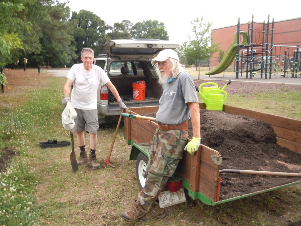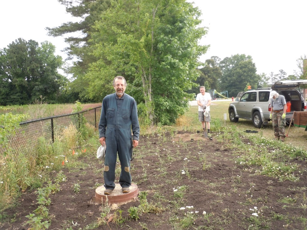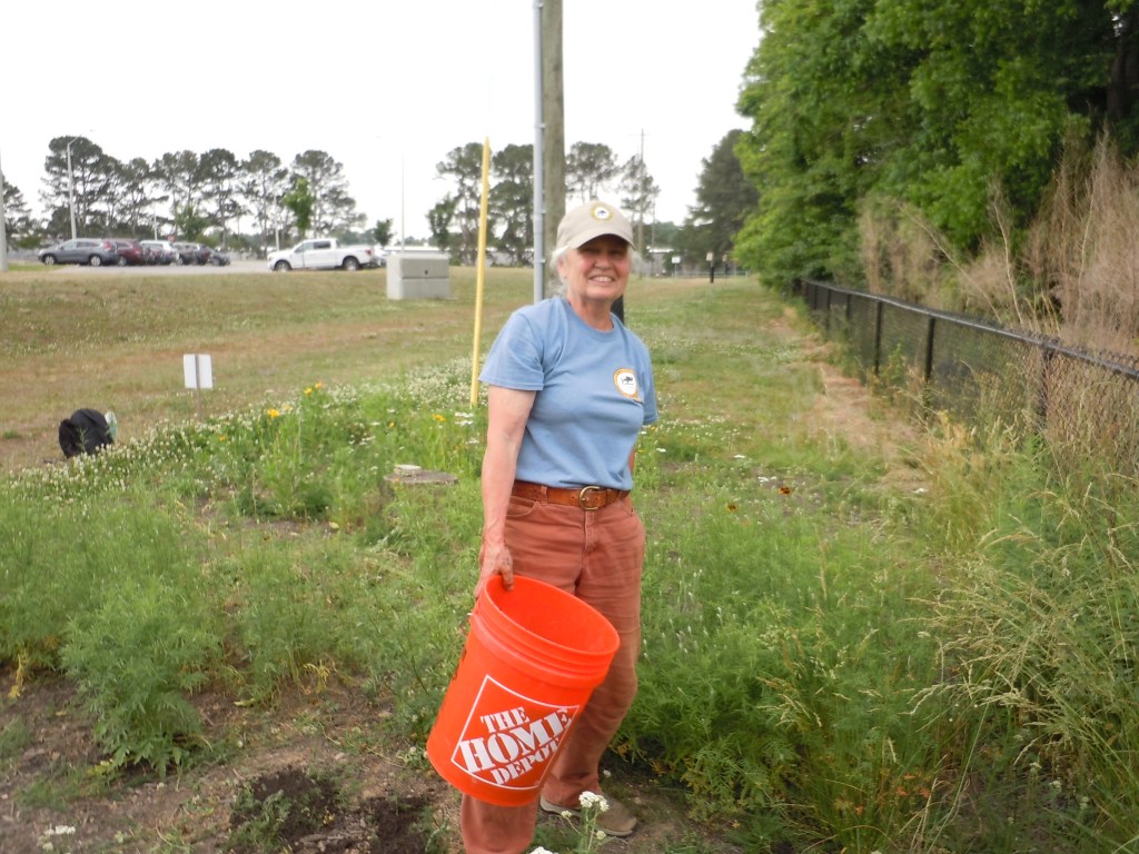 On May 24, 2021, four members of the South Wake Conservationists (SWC) collected 75 pounds of trash and also worked on the pollinator garden at Lincoln Heights Magnet School in Fuquay-Varina, North Carolina. SWC members planted a few small pollinator plants, added considerable compost to the garden and performed various weeding chores.