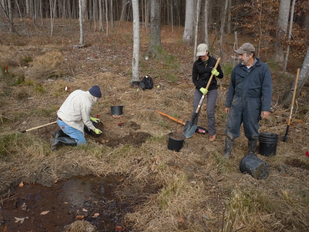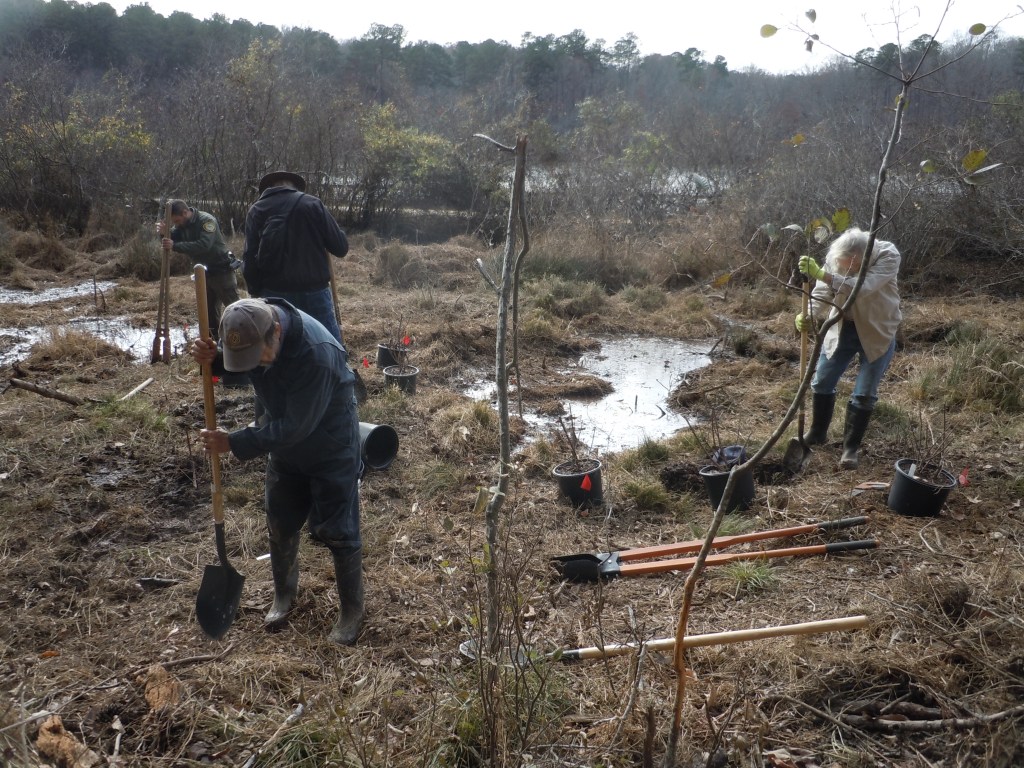 Representatives from SWC, North Carolina Wildlife Federation and Umstead State Park planted 18 water-loving Button Bushes today in the Park’s bog. Button Bushes create beautiful pollinator-attracting blooms but need a “swampy” environment to bloom. The group also distributed Swamp Milkweed seeds in the bog!
