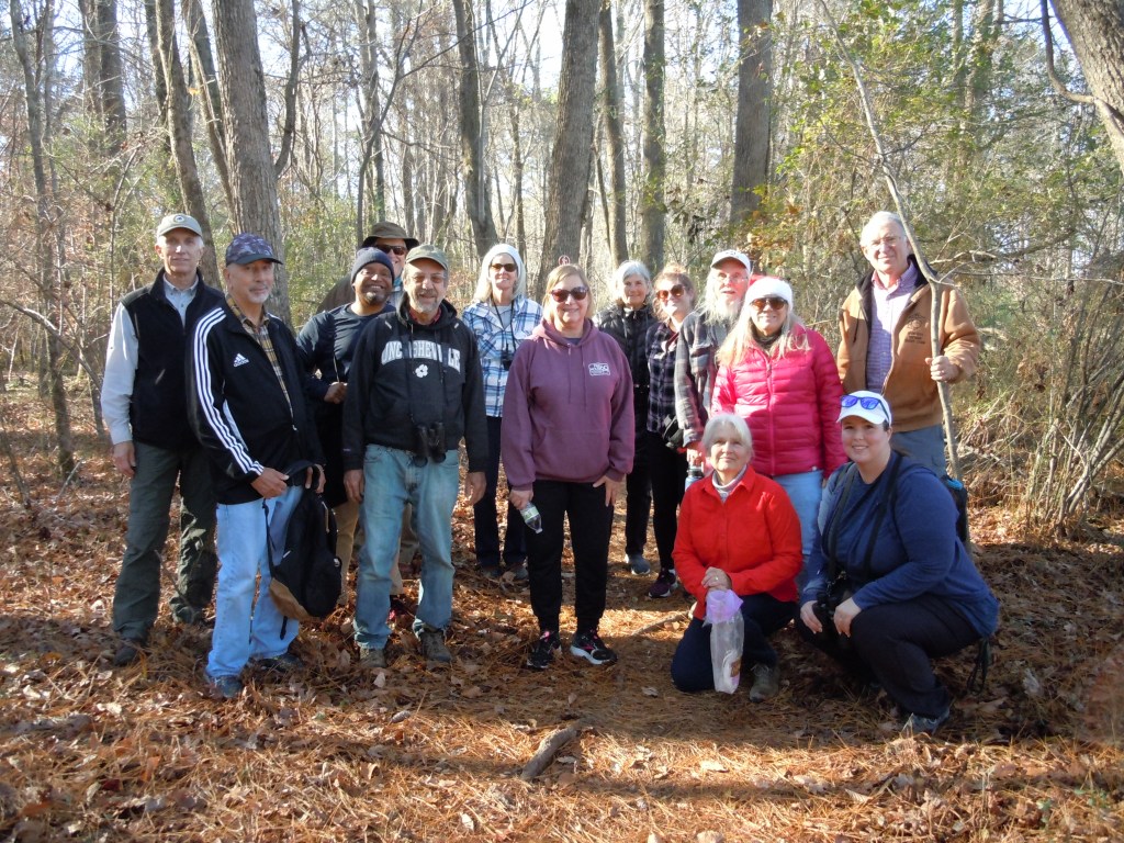On December 12, 2021 the South Wake Conservationists sponsored a 3+ mile nature walk at beautiful Yates Mill County Park in Raleigh, NC. Fifteen nature enthusiasts enjoyed great weather, enjoyable companionship and wildlife which included deer, a snake, a flock of Ruddy Ducks, Hooded Mergansers and a group of very vocal Red-shouldered Hawks!