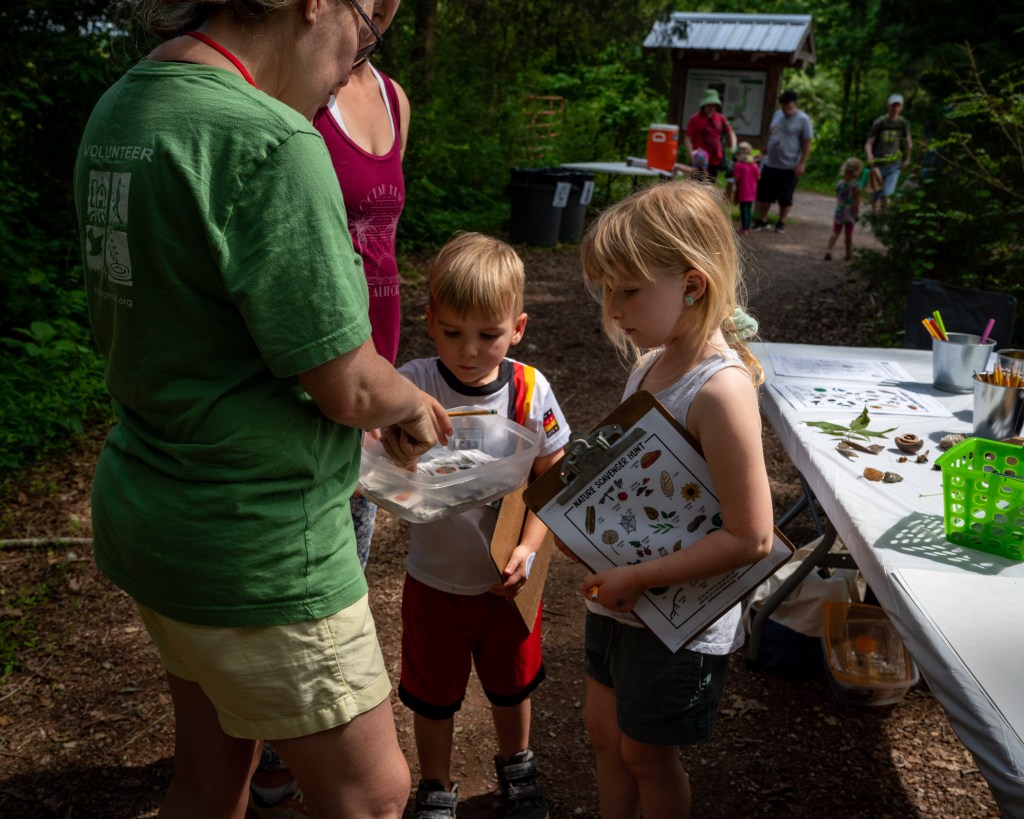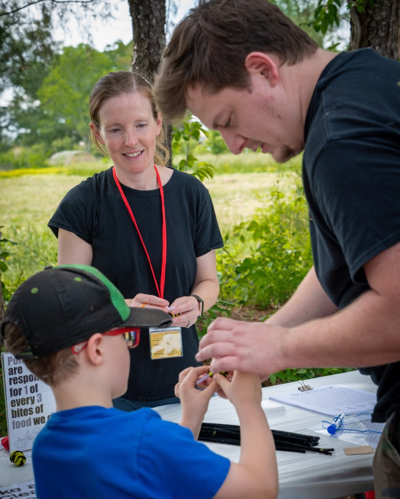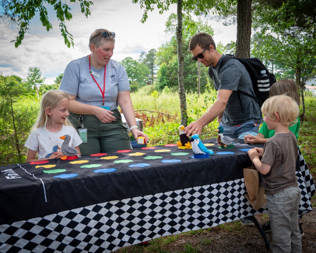It was a great day at the Triangle Land Conservancy’s Williamson Preserve last Sunday! Over 160 people attended our first Kids in Nature Day event, despite having to reschedule from Saturday due to rain. Seeing kids filled with wonder and enthusiasm about the amazing things found in nature made the six months of planning and hard work by thirty volunteers and twenty-plus exhibitor staff all worth it! We were very appreciative of our great partnership with the Triangle Land Conservancy to sponsor the event at the Williamson Nature Preserve, which everyone agreed was a perfect environment for the event. We also had wonderful participation from many other organizations in the state and local area to offer fourteen different hands-on activity centers, plus a special exhibit by the Wake County Sheriff, including: