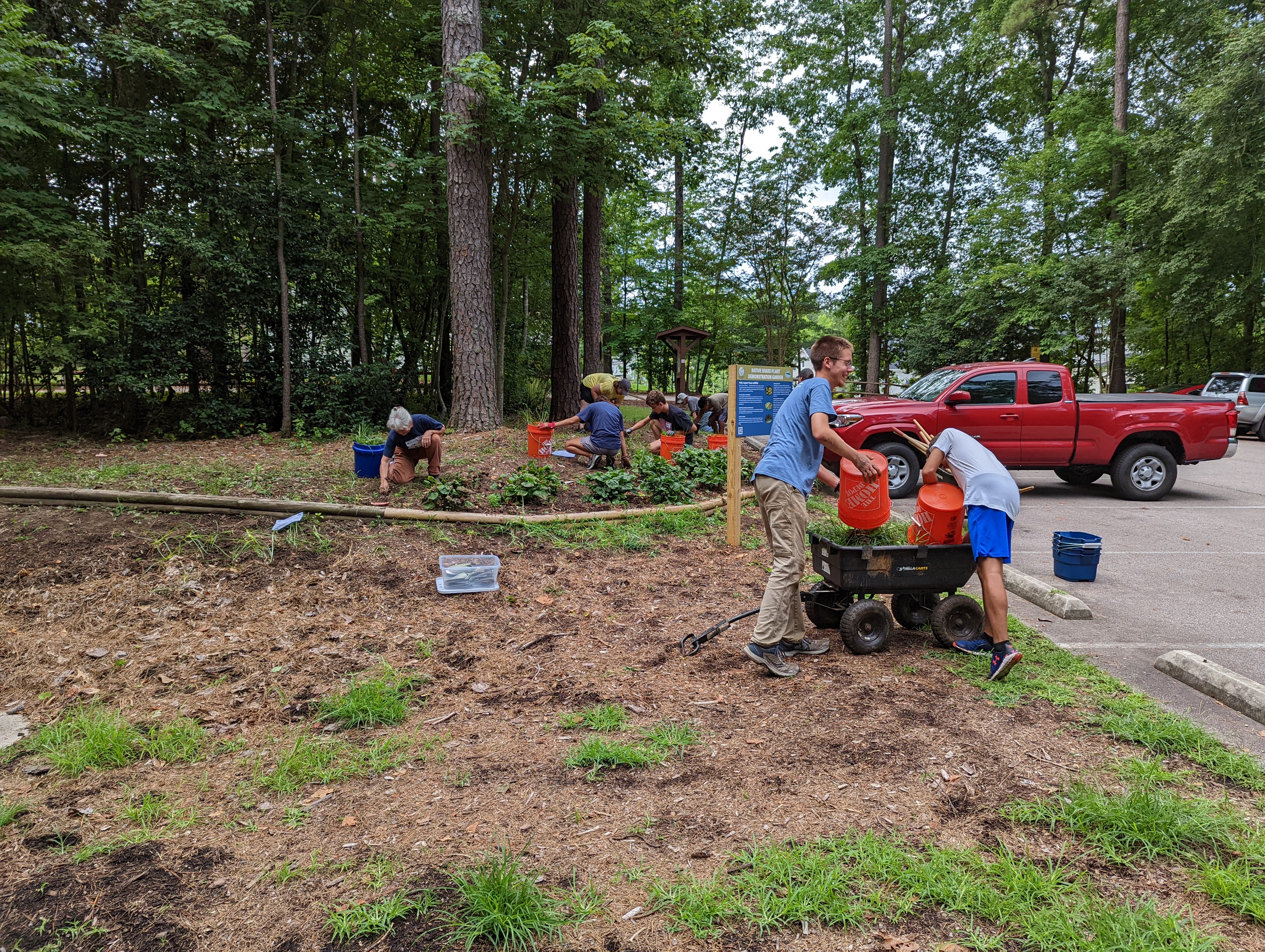 On Saturday morning July 9, 2022, three members of the South Wake Conservationists hosted a successful “weeding party” at the Bass Lake pollinator garden. They were joined by employees and volunteers from the Activate Good volunteer organization. The North Carolina Wildlife Federation’s Conservation Coordinator also participated. The group also mulched the entire garden. Enjoy the photos!