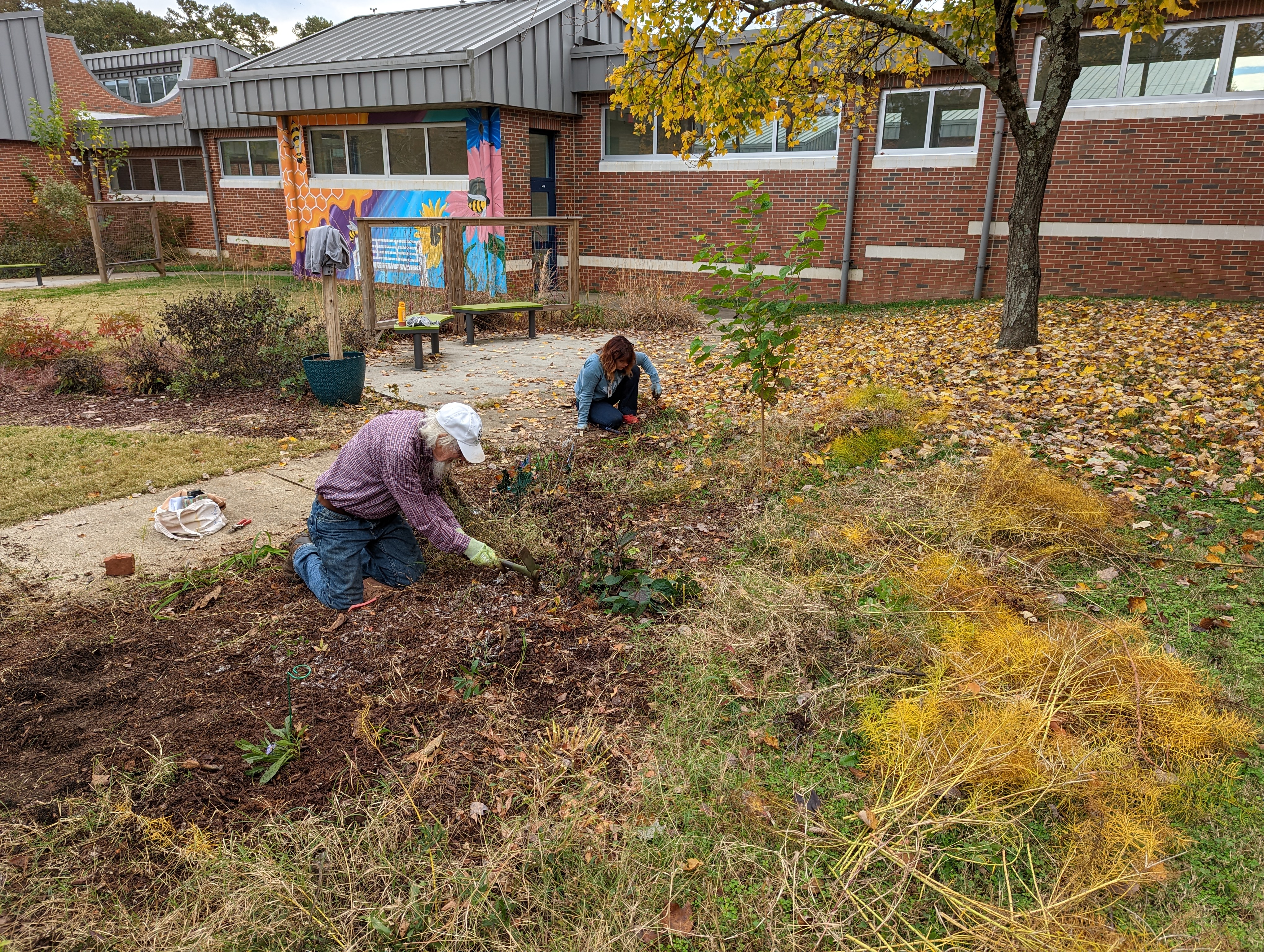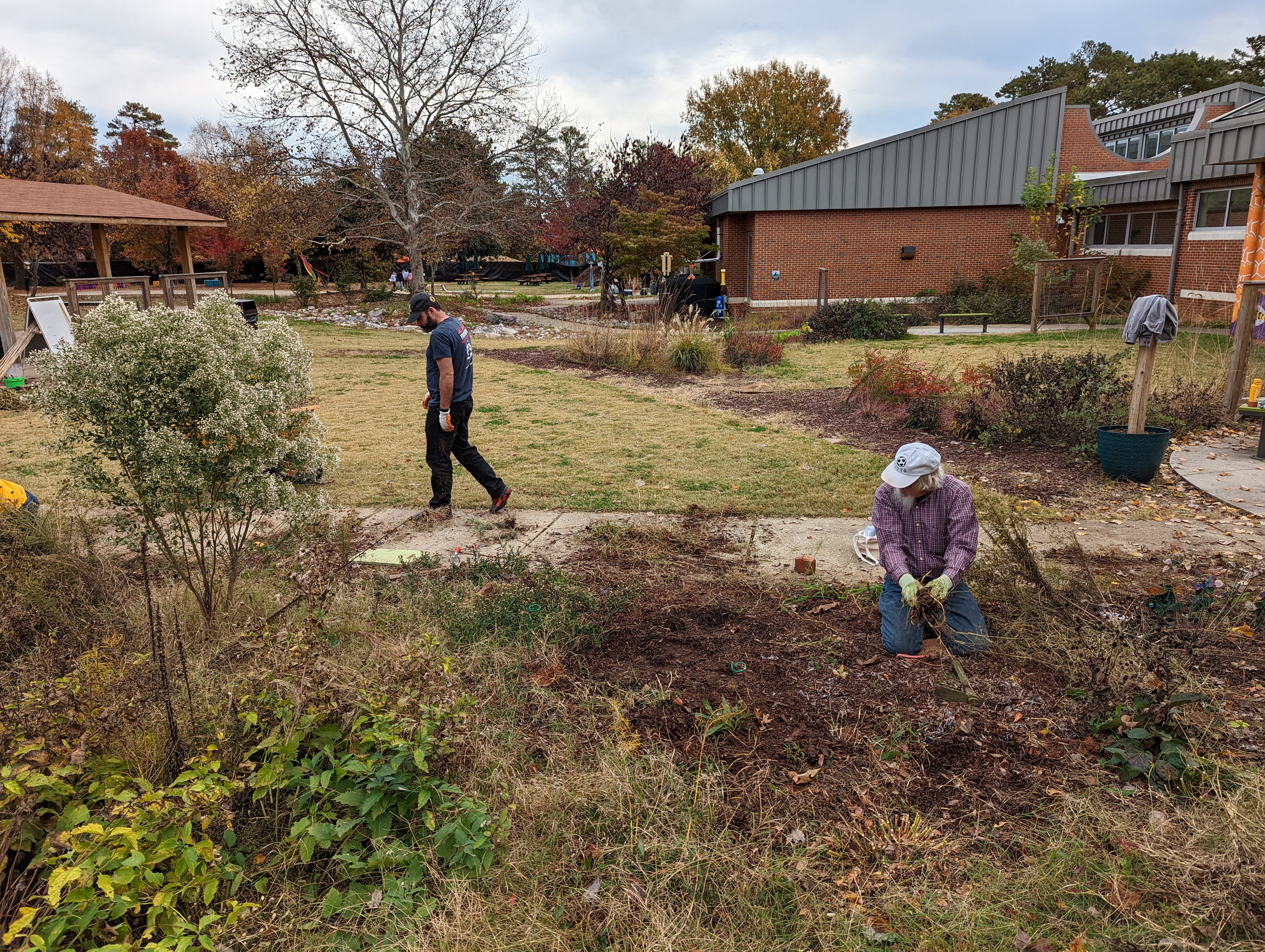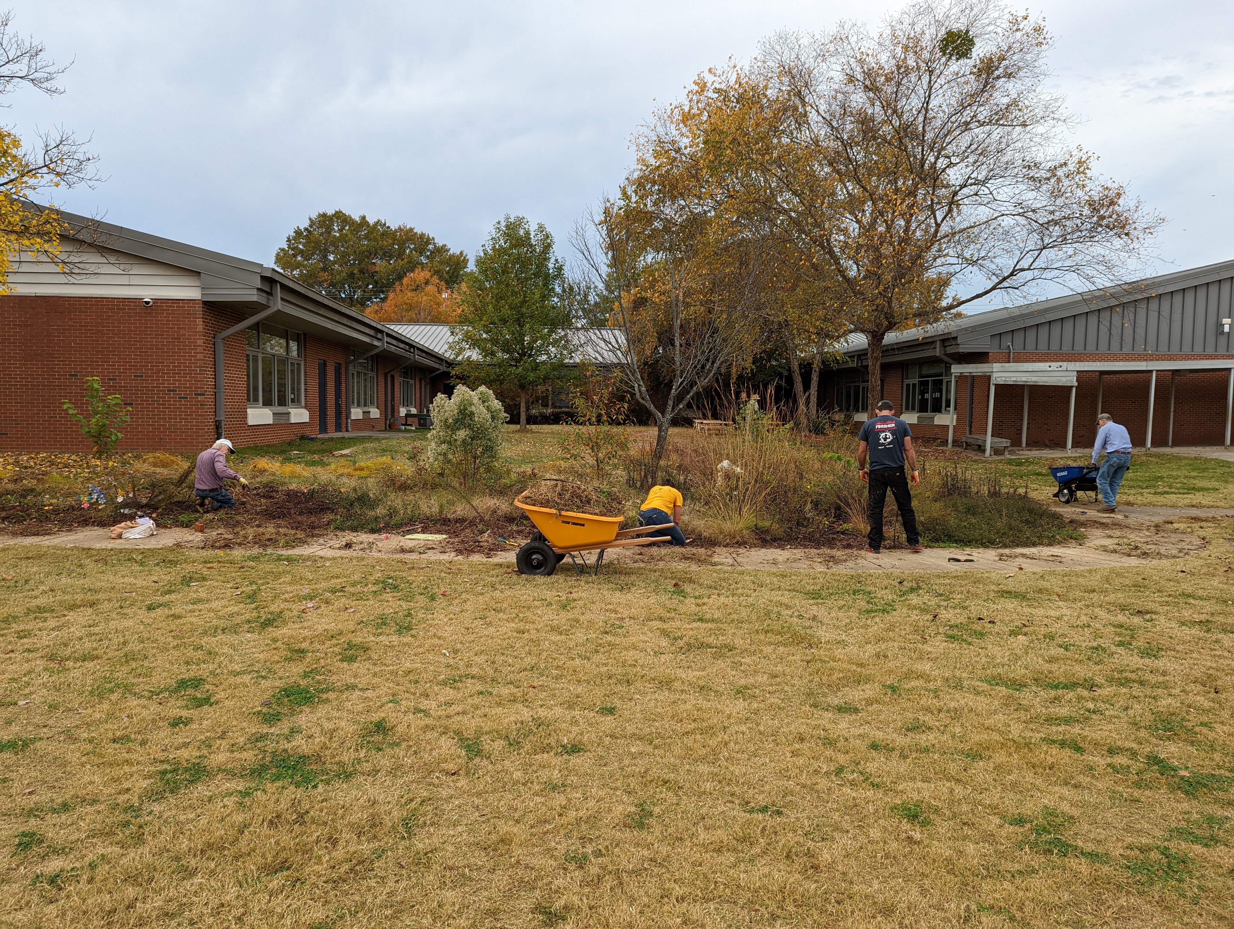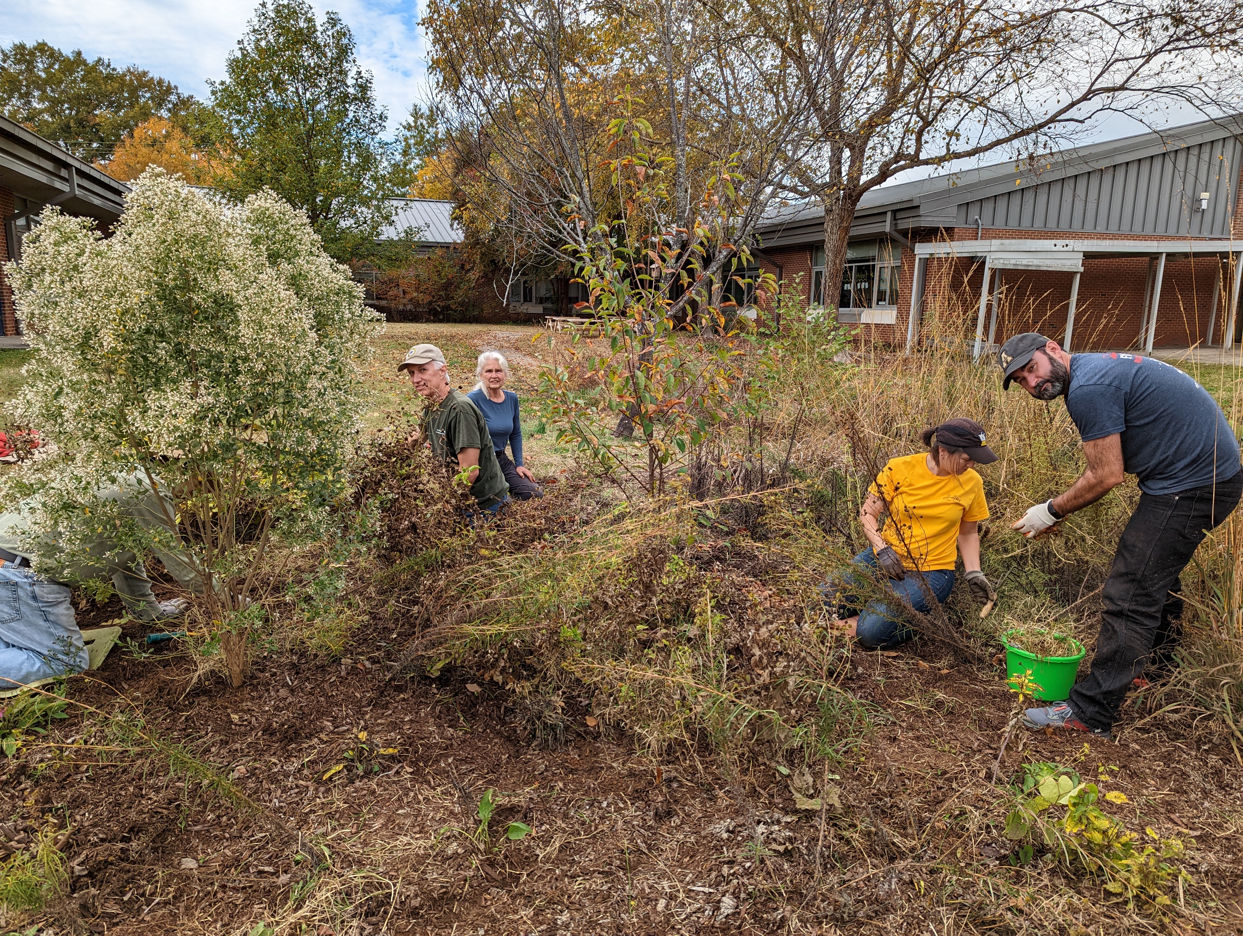 SWC visited Millbrook Elementary School, one of our seven pollinator gardens, this morning (Nov. 2) to tackle the weeds encroaching on the pollinator plants. John led the team, as we triaged the good from the bad (mainly Bermuda grass!) and restored the natural beauty of the beds. Thanks to Bob, Regan, Chad, Bill, Ray, and Dawn, as they joined John and me to get the job done. In addition, Chad and John re-installed two bluebird houses that had been displaced by construction.