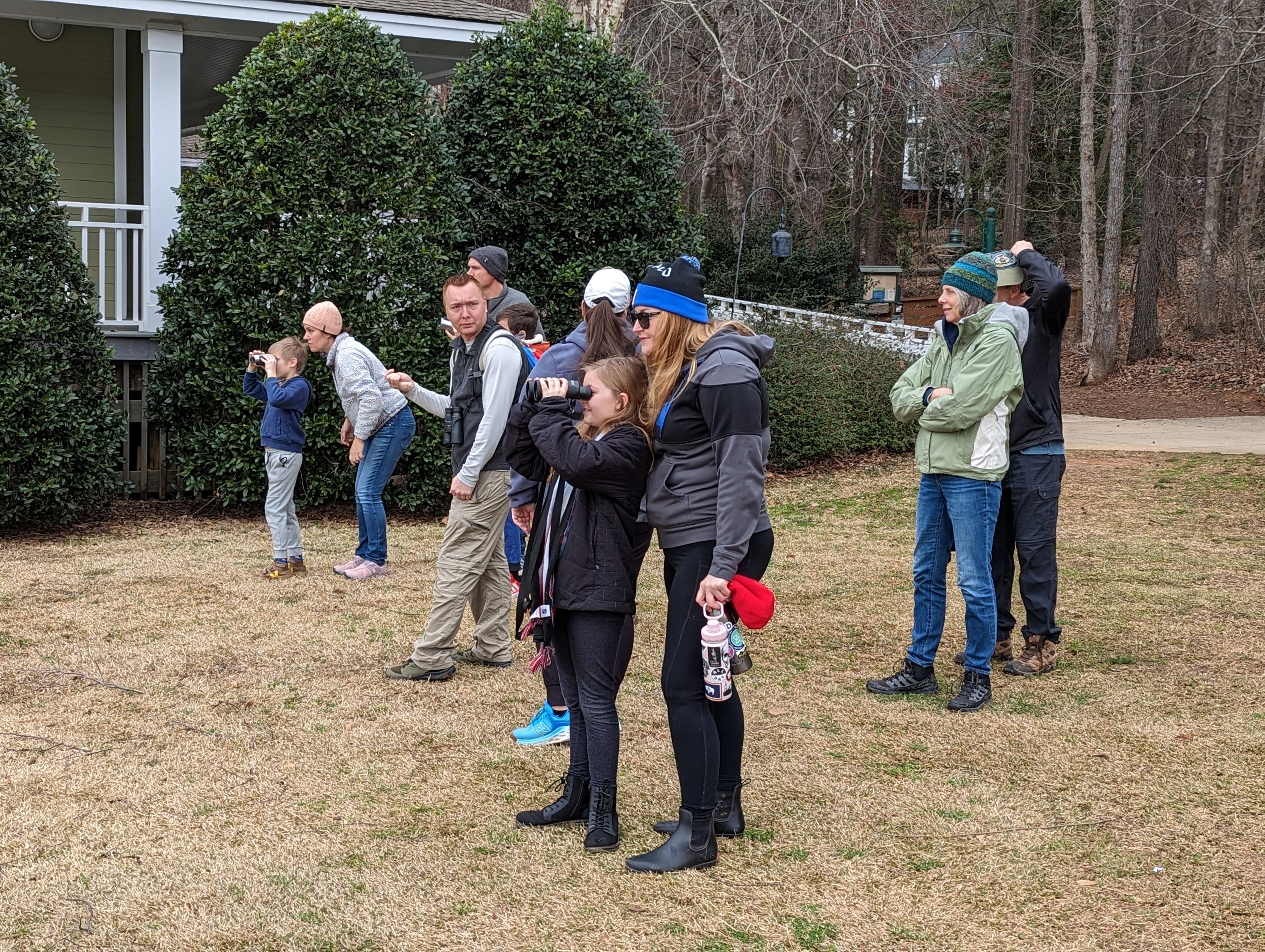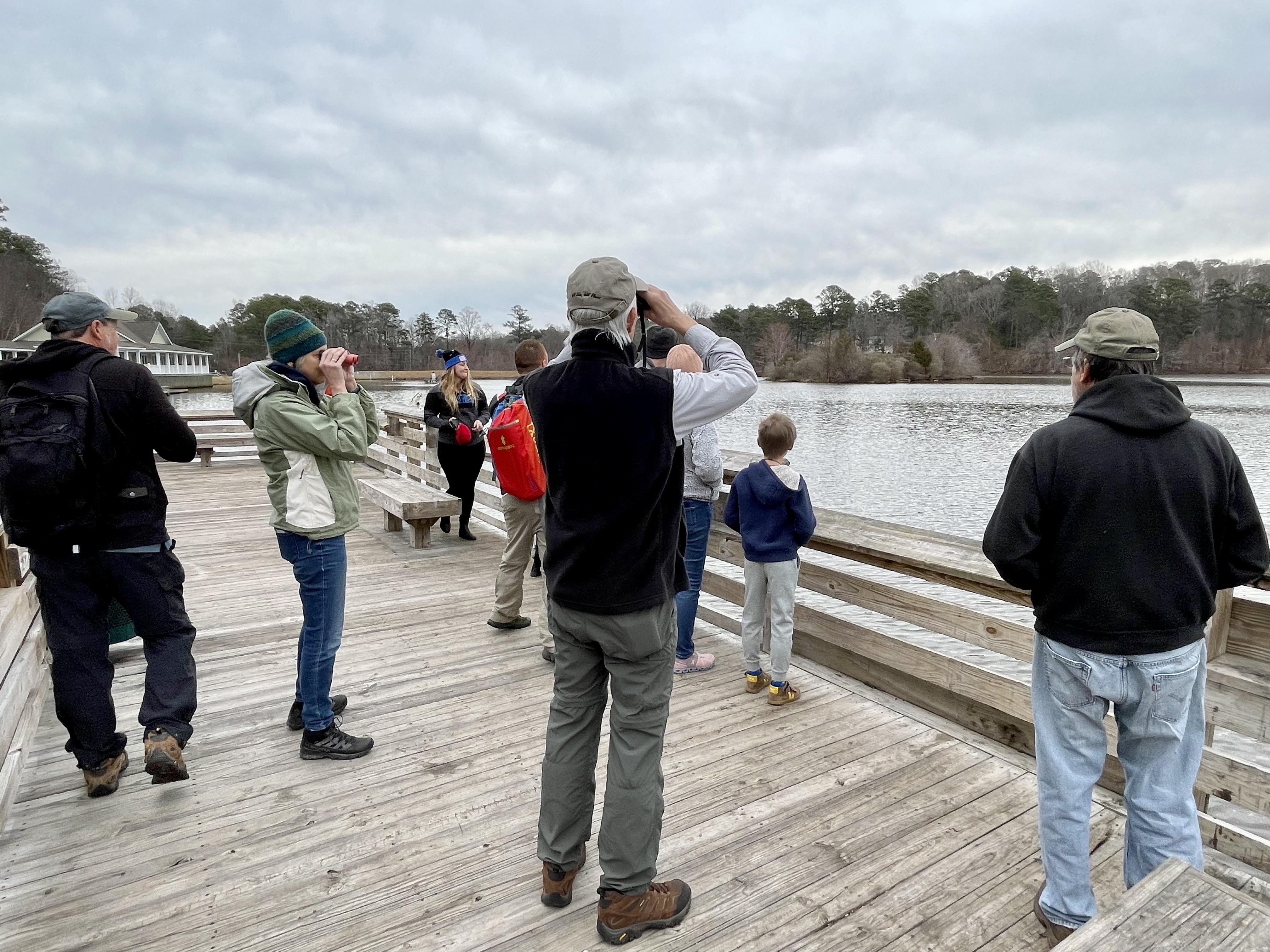 SWC members and guests enjoyed a nice walk at Bass Lake in Holly Springs this morning. We successfully spotted a handful of winter waterfowl visitors: American Coots, Buffleheads, Cormorants, and Ruddy Ducks. Our guide, who is a frequent birder of this location, commented on the unusually high abundance of the American Coot species we saw foraging in the water. We also spotted several year-round residents: Bald Eagle, Great Blue Herons, Mallards, Red Tail Hawk, along with numerous songbird species. A special treat for the group was hearing a Barred Owl calling in the distance while we were along the southern end of the lake. Be sure to keep an eye out on the website for future SWC outings!