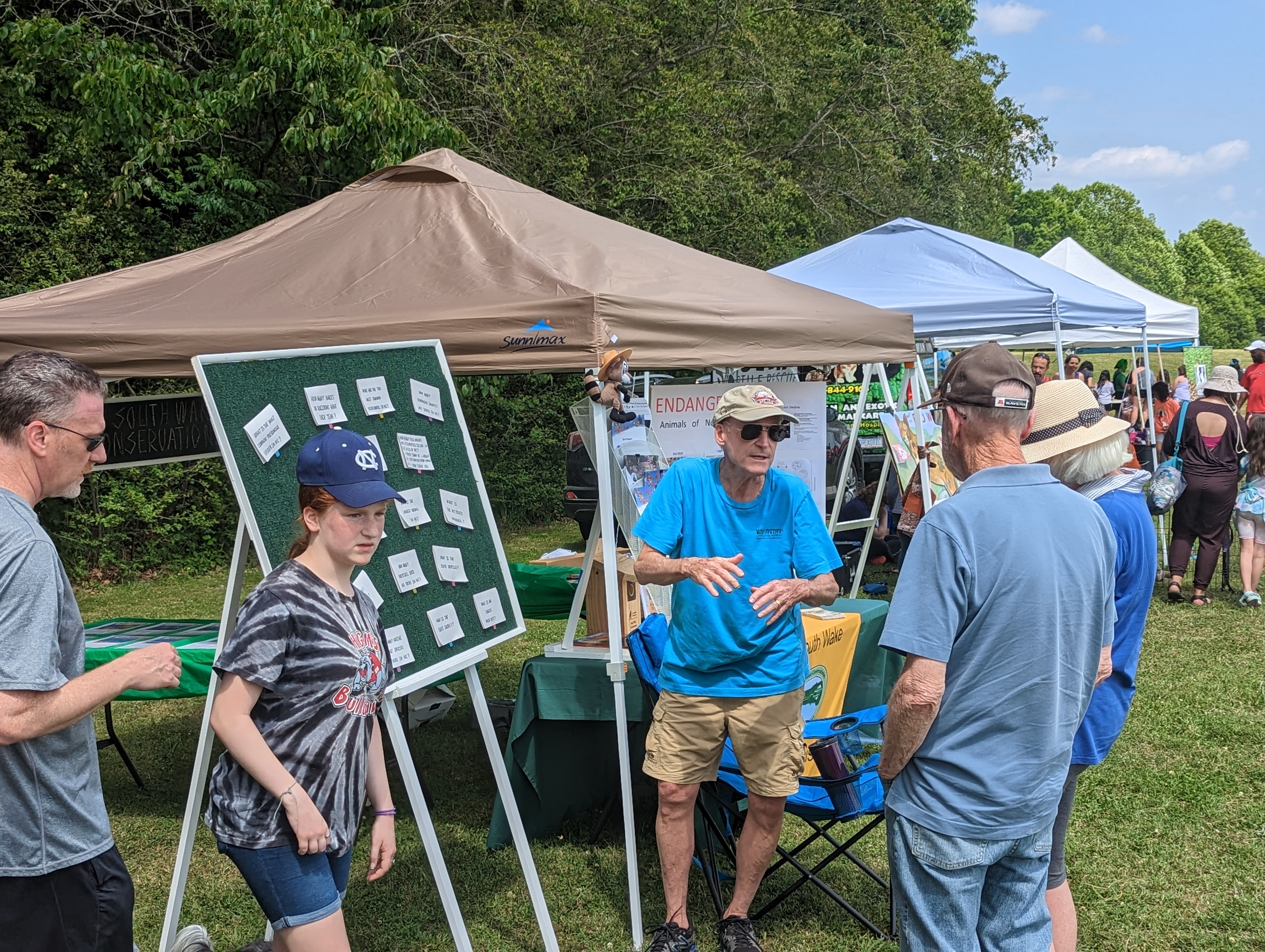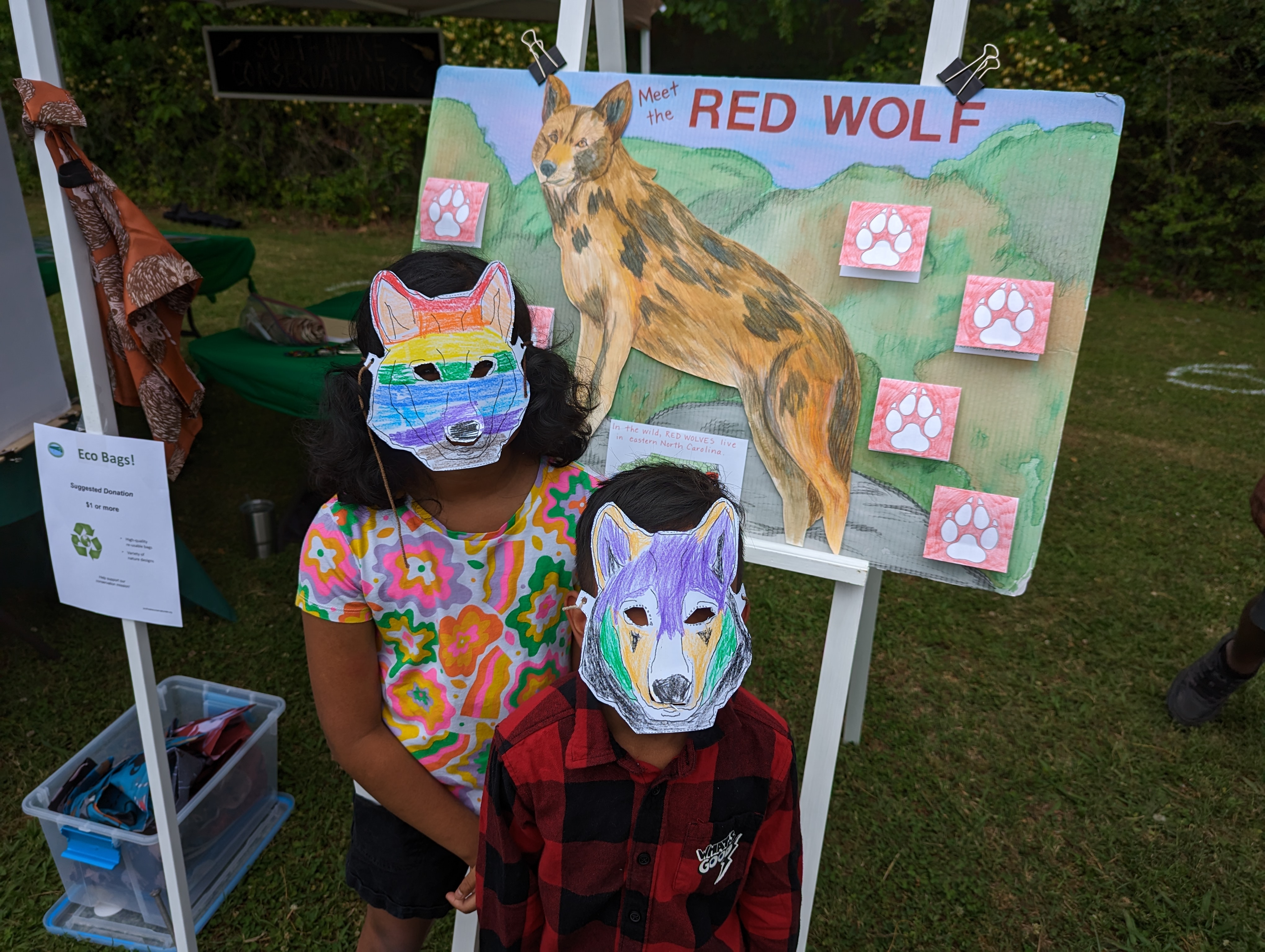 It has been a busy month, and we were pleased to be invited to share our conservation message with families in the local area at two events this week. Lincoln Heights held their Tiger Fest for the elementary school kids Friday evening. We have partnered with Lincoln Heights on their pollinator gardens for several years now. On Saturday, we participated in the Wild About Nature Festival at Sugg Farm in Holly Springs. This is a major expansion of the original Turtle Fest, and we had wonderful engagement from many of the families. Our theme in the display and the children’s games was “Endangered Animals in NC,” recognizing both Endangered Species Month and the 50th anniversary of the highly-successful and impactful Endangered Species Act (think Bald Eagle, Grizzly Bear, and Whooping Crane, for instance). We also had special red-wolf mask making plus our Habitat Game, both of which were quite popular with the kids. Many thanks to Jeff and John for helping us get out into the community.