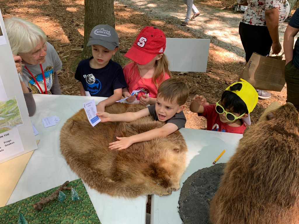 Ranger Rick led the way, and 450 kids had the time of their lives at the South Wake Conservationists’ second annual Kids in Nature Day on May 6! With over 1,200 registrations and 900 actual attendees, the 2023 event was bustling with activity at 20 hands-on activity stations, yet the park provided plenty of space for all of it with open space, woodlands, and lake edge areas. One week later, results of a post-event survey indicate 100% of those surveyed want to return next year. Exhibitors report that the kids all had fun and showed a great deal of interest and engagement in the various nature-related activities, so we hope they are inspired to bring a fascination and respect for wildlife and habitat forward as they grow older.