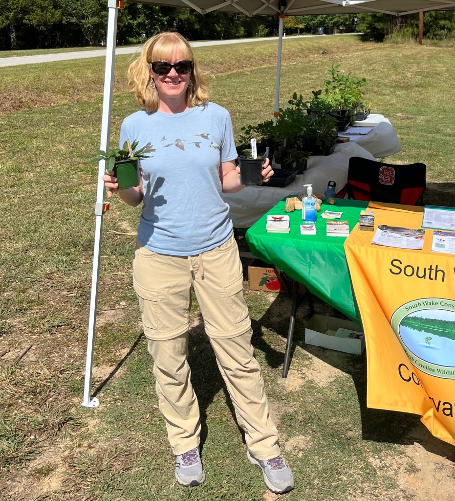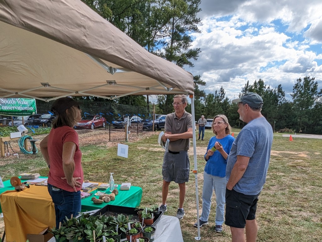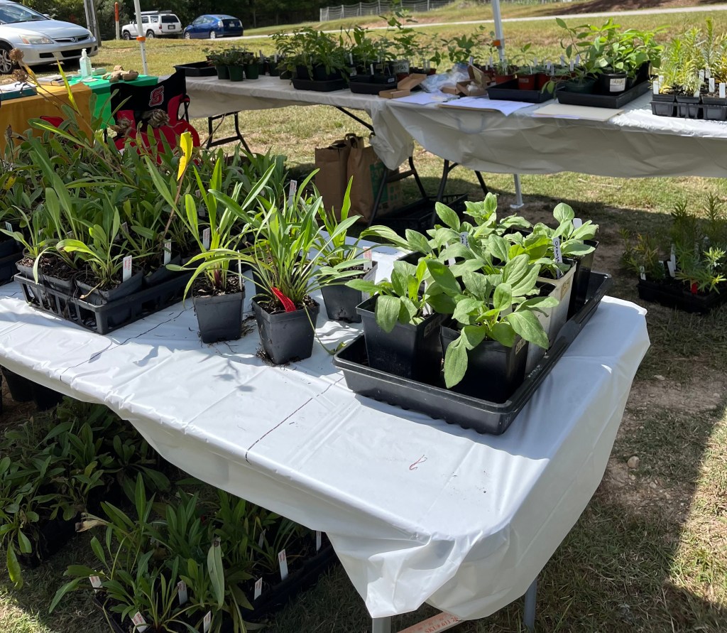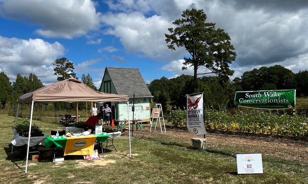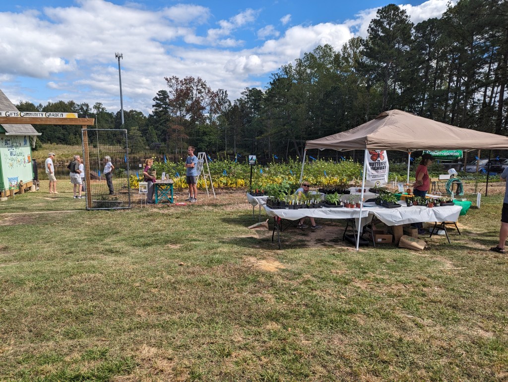 SWC partnered with Simple Gifts Community Garden at their new location in Apex on Sunday, Oct. 1, to hold a joint native plant sale and organic community garden tour. The weather was beautiful, and many people turned out to find their favorite plants and check out the new garden site, which just relocated this year. There were twenty different plant species offered, thanks to the generous plant donations by NCWF, as well as plants personally cultivated by Chad Chandler. This was a great fundraiser for the chapter, and hopefully some of the visitors will also want to start volunteering at the garden, which grows fresh, organic produce to contribute to local food pantries. The garden also has a strong commitment to pollinators as part of the Butterfly Highway and is re-building its large beds dedicated to a diverse set of pollinator plants. Plants left over from the sale are being planted there, reinforcing public support and appreciation of the pollinators!