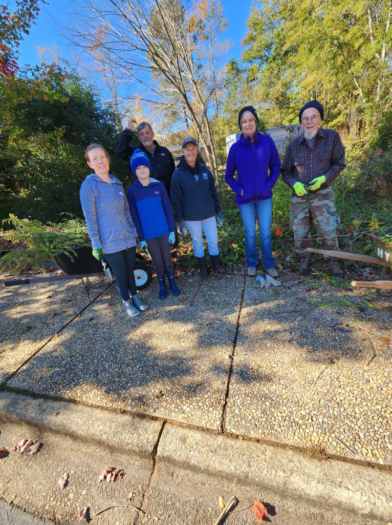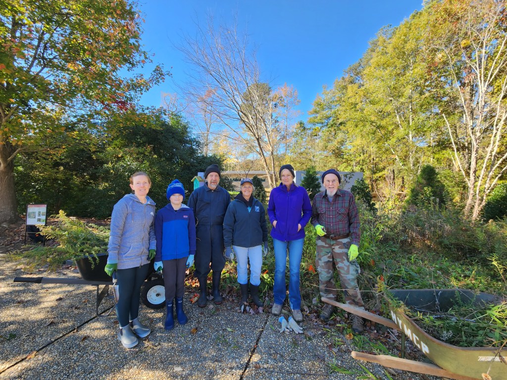 On November 1, 2023 seven South Wake Conservationists braved the chilly weather to have a very productive pollinator garden workday! The group concentrated on the primary garden at Yates Mill County Park and removed an impressive amount of invasive plants such as blackberry and Bradford Pear. They also dead-headed and clipped dead growth from pollinator plants, preparing them for spring. In addition, they planted several pollinator plants in an additional garden. Thanks to all who made it worthwhile to brave a cold and windy day!