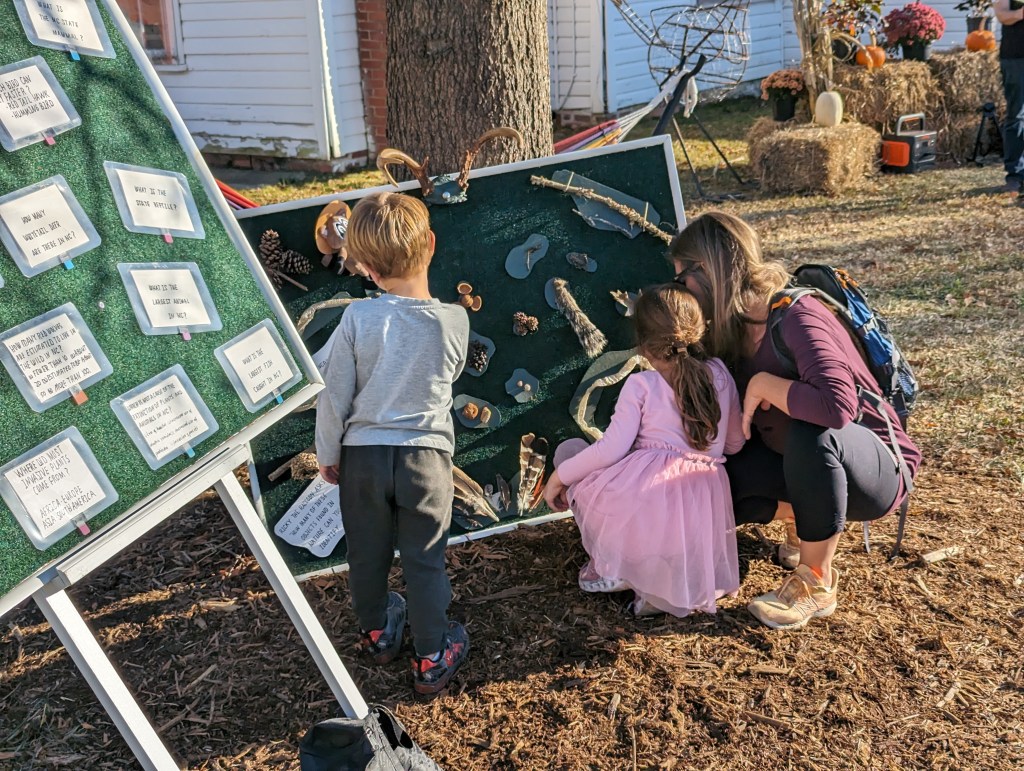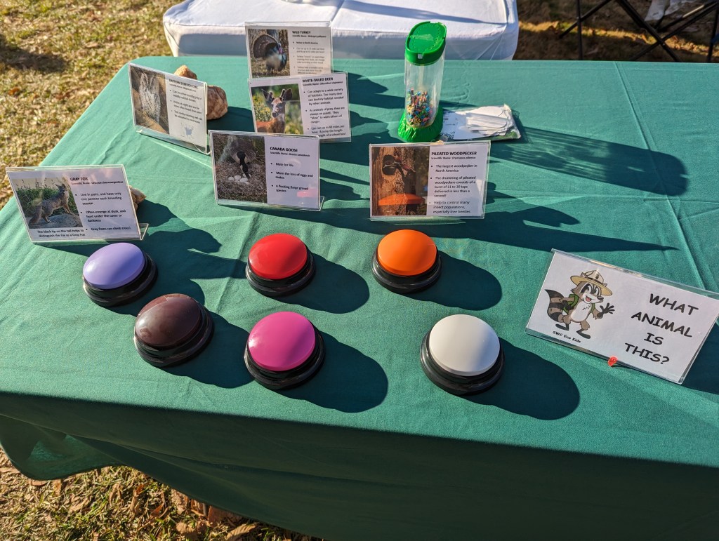 It was a beautiful day at the farm! With sunny skies and temps in the lower 70’s, the SWC team enjoyed a very pleasant afternoon engaging the local community at Cary’s annual Harvest Fest at Good Hope Farm. We engaged in many great conversations about threats to biodiversity (including the Save our Sounds campaign), introduced people to the chapter, and had fun with everyone trying to guess the answer to questions on the Q&A board, identifying items on the nature display board, and trying to match recorded animal sounds with the right animals. Thanks to teammates John, Regan, and Bill for making it a successful afternoon, and especially to our Public Engagement chair Jeff, for managing our participation in the event.