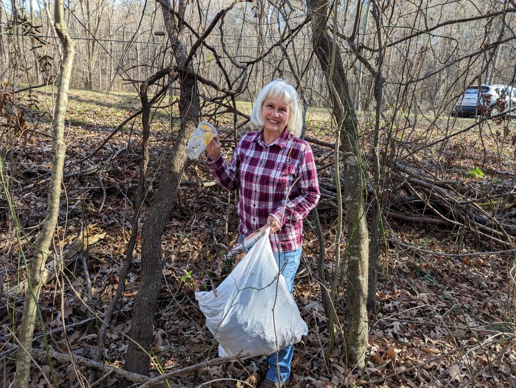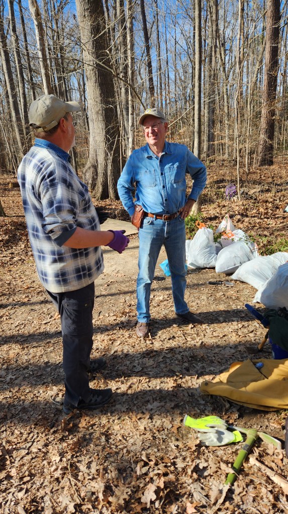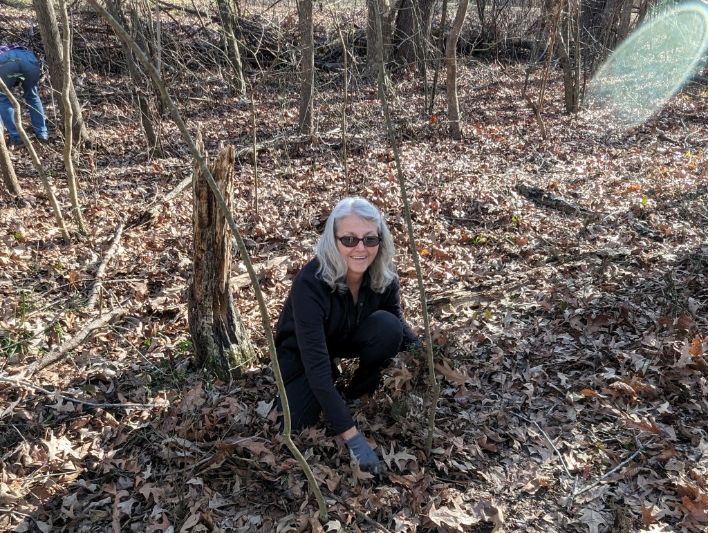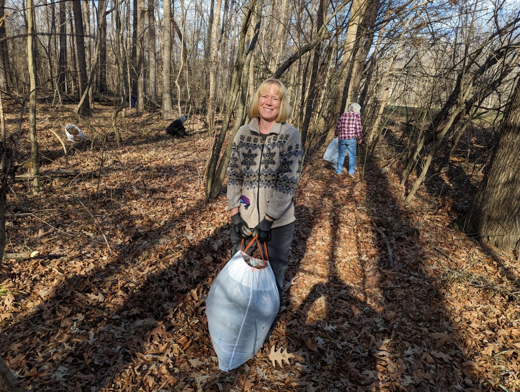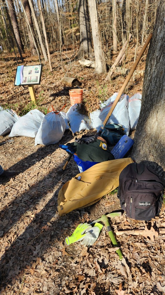 Fifteen hard-working souls joined together on Jan. 30 as a South Wake Conservationists work party to make a big dent in removing invasive plants at the Triangle Land Conservancy’s Swift Creek Bluffs Nature Preserve in Cary. The usual suspects were Japanese Honeysuckle and Chinese Privet, and in the end, twenty-four bags were stuffed full! This will give the soon-to-be-arriving native spring ephemerals room to expand, supporting local wildlife and making a glorious display. Watch for an upcoming hike later this spring to see these ephemerals, when they emerge!