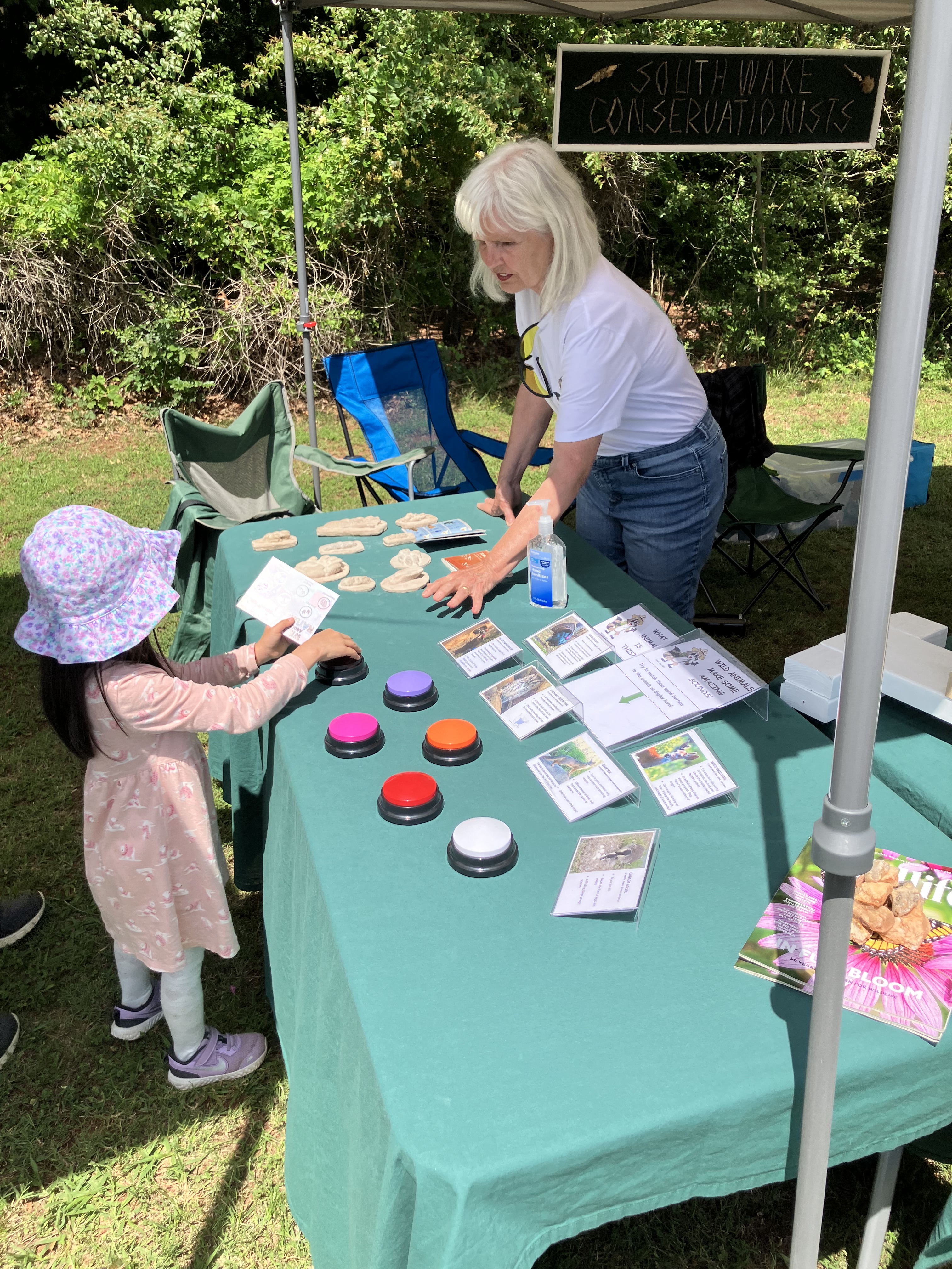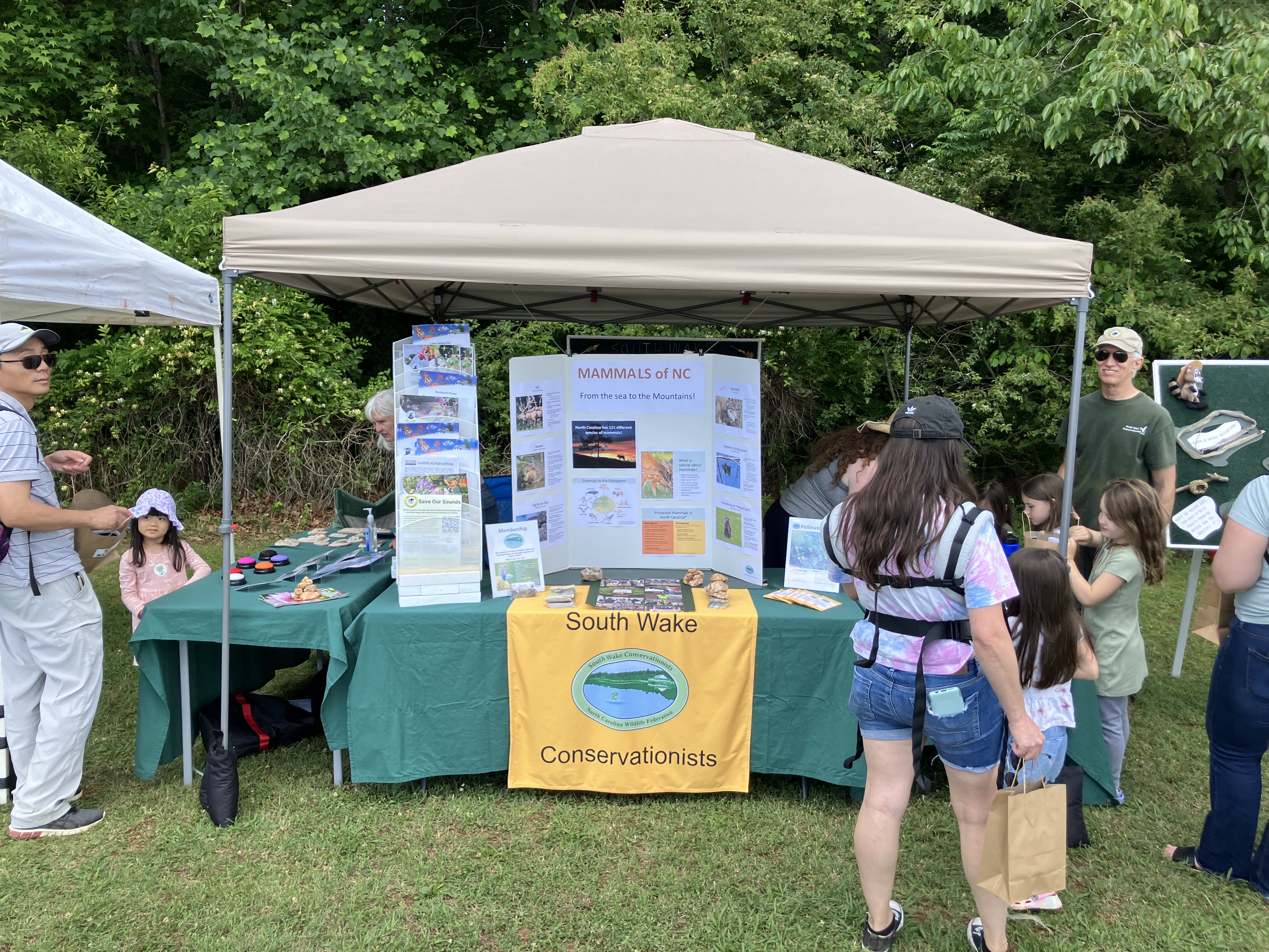 It was a beautiful day for the annual Holly Springs Wild About Nature festival, where SWC has participated for many years (formerly known as Turtle Fest and Bass Lake Day). Everyone dodged the cicadas that were all around and had a good time! We continued our 2024 theme of NC Mammals, with display materials and activities for the kids, including animal track identification, animal sounds matching, and fox puppet crafts. We hope some of the families that visited our booth will continue to follow our activities online and join us in the future, Many thanks to Jeff, Katie, Bob, and Regan for volunteering to make this another successful public engagement for conservation in our local community!