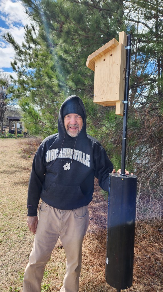 On March 6,2025 on cold and windy day two South Wake Conservationists installed four houses for our avian friends! The houses were installed on the property of St. Bernadette’s Catholic Church in Fuquay-Varina. The installations consisted of two each for Bluebirds and Nuthatches. Several houses were installed last year on the same property with very good results. We are hoping for the same from this most recent installation!