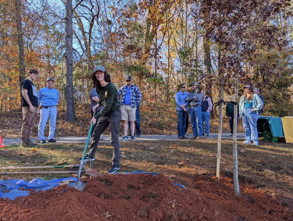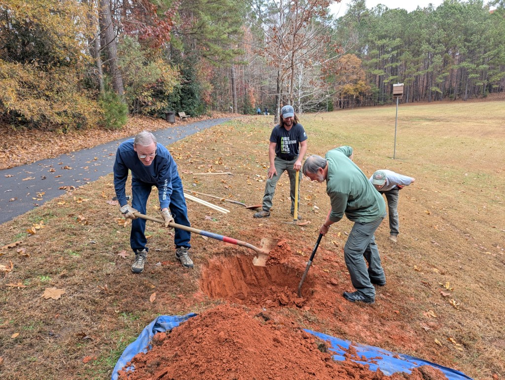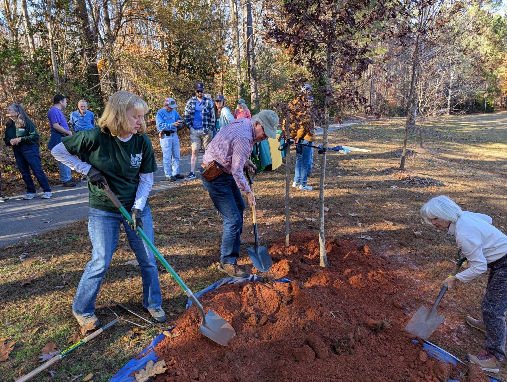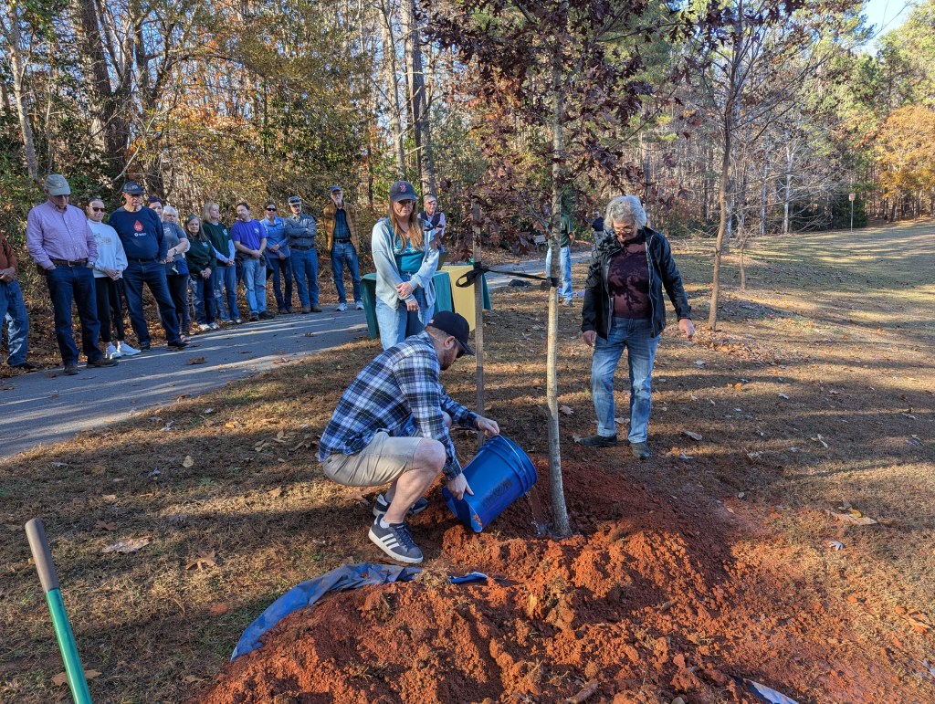 Many thanks to Crowder County Park for their hands-on assistance with the prep work the day before and their support of this memorial. The park will keep an eye on the tree and keep it watered until it is established.