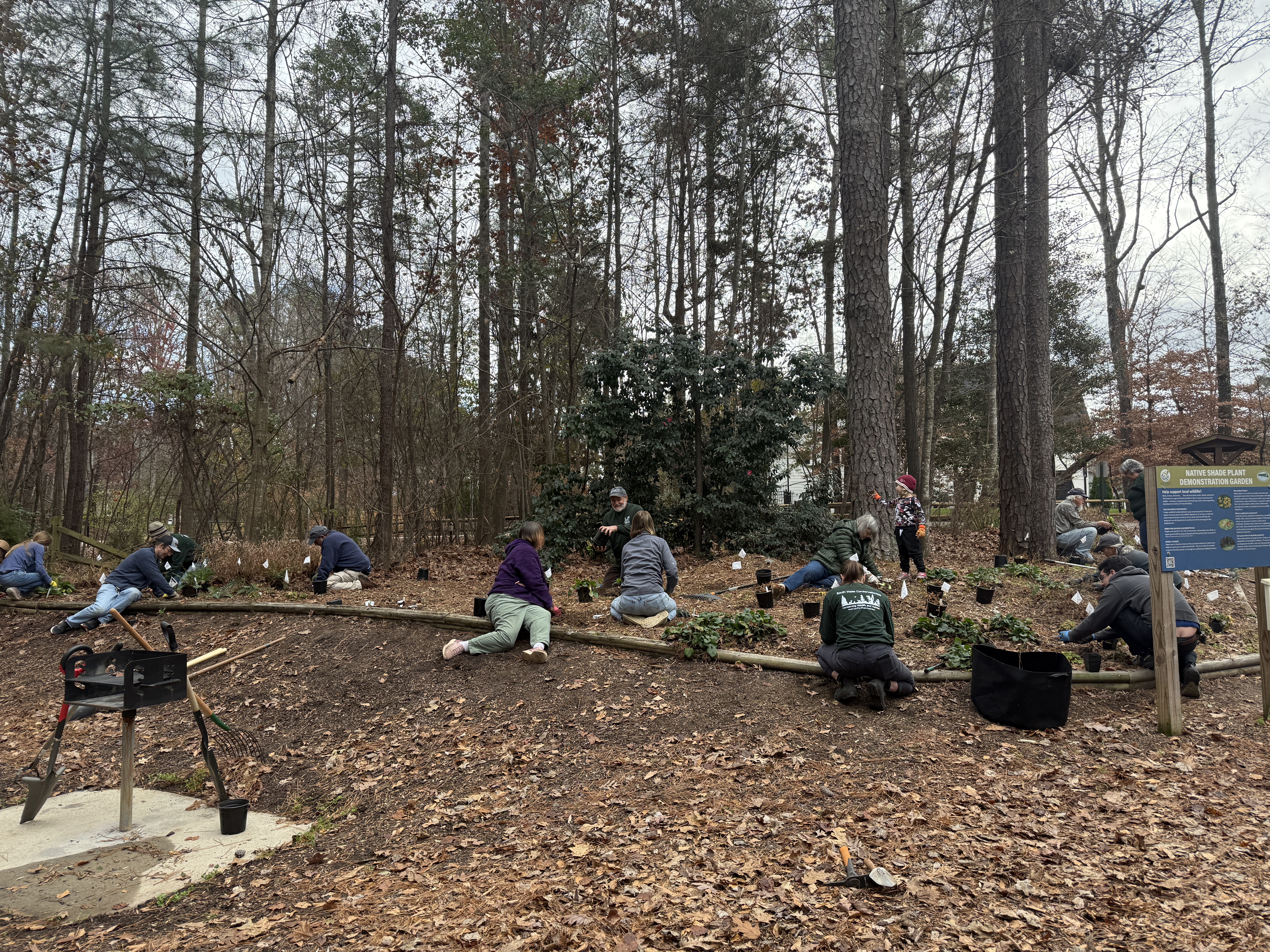 The team raked, planted, and mulched 73 plants in two hours, proving “many hands make light work!” This will help fill in gaps in the current beds and be ready to flourish next spring. The public handouts will also be updated accordingly, so visitors can get ideas on how to plant natives in their own back yards.