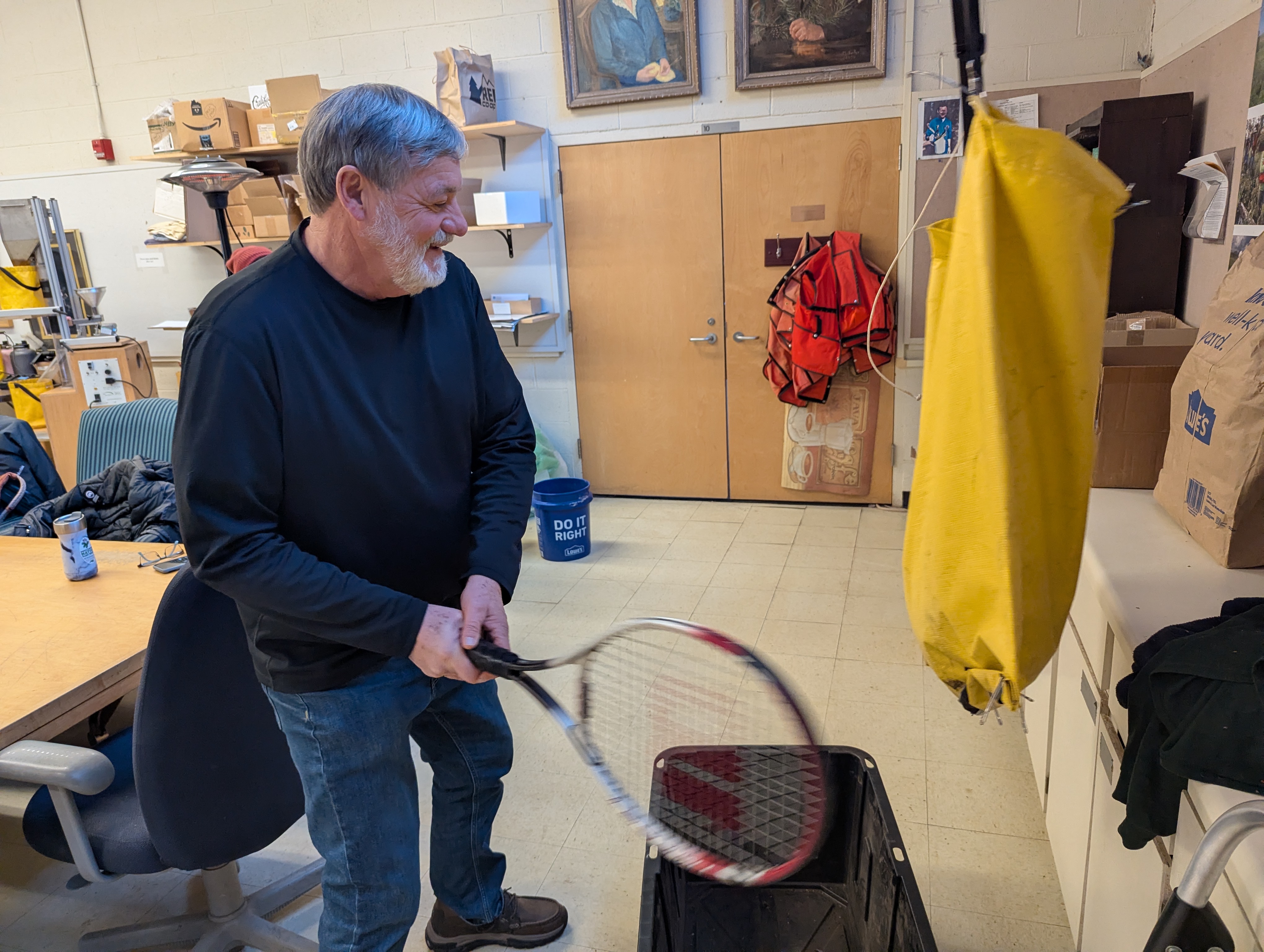 The coolest equipment was the “seed blower,” which takes seed mixed with other plant matter that is poured into a funnel and gently blows it through tubes to separate it all into two different containers. I have to admit, though, that my personal favorite was whacking a big bag of Rattlesnake master in a heavy bag with a tennis racket to shake the seeds loose! Other techniques involved finer motor skills, picking seeds out one-by-one from grass stalks and milkweed “fluff,” as well as sifting though screens.