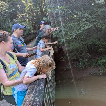 On a beautiful early-fall afternoon last Saturday, kids enjoyed exploring the trails near the Harris Energy and Environmental Center in New Hill, looking for signs of wildlife. As part of the SWC Eco Kids Program, Bonnie Eamick, Environmental Educator, led a group of inquisitive kids along the wooded trails and along a dry creekbed in … More Looking for Clues on the Trail